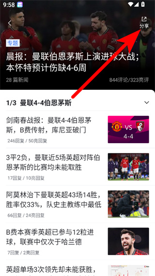 2、在国际足球专区,选择要分享的内容,点击进入详情页。