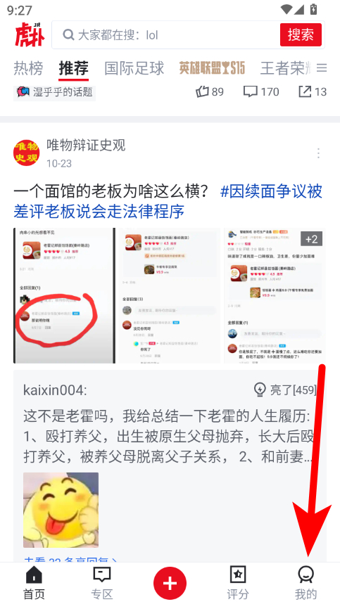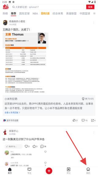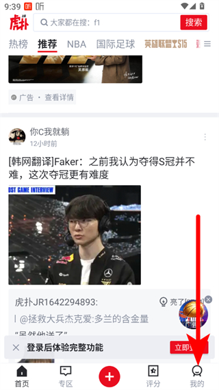 1、在虎扑首页,点击右下角我的选项,进入个人页面。