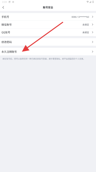 4、在账号安全内,找到并点击永久注销账号的按钮。