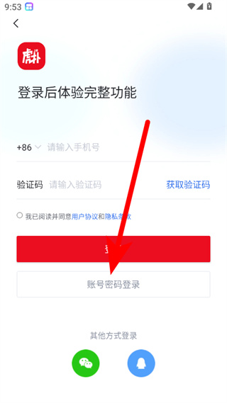 3、在登录界面,点击账号密码登录选项,切换至对应页面。