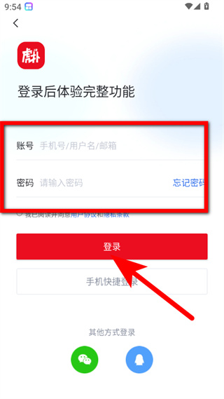 4、在账号密码登录页面,输入账号与密码后点击登录,完成操作。