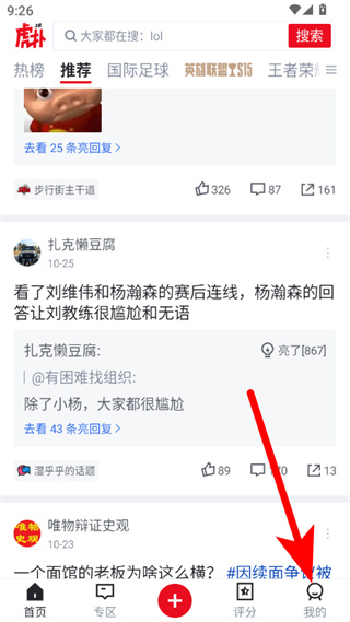 1、在虎扑首页,点击右下角我的选项,进入个人页面。