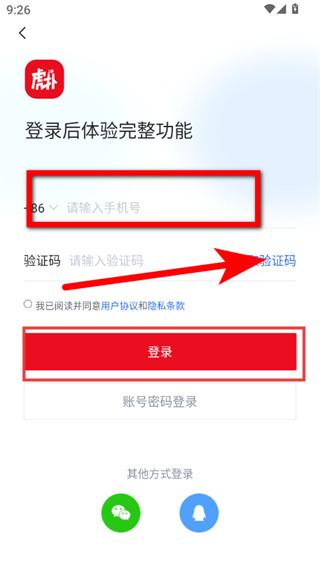 3、在登录页面,输入手机号并获取验证码,填写后点击登录。