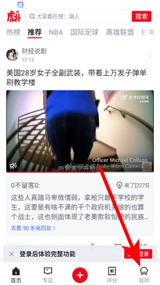 1、在虎扑首页,点击右下角我的选项,进入个人界面。