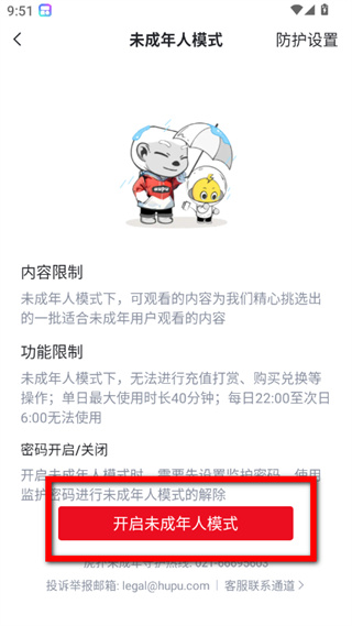 4、在未成年人模式页面,点击开启未成年人模式按钮,完成操作。