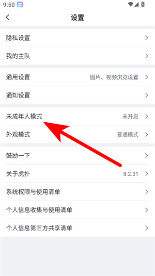 3、在设置界面,点击未成年人模式选项,进入对应页面。