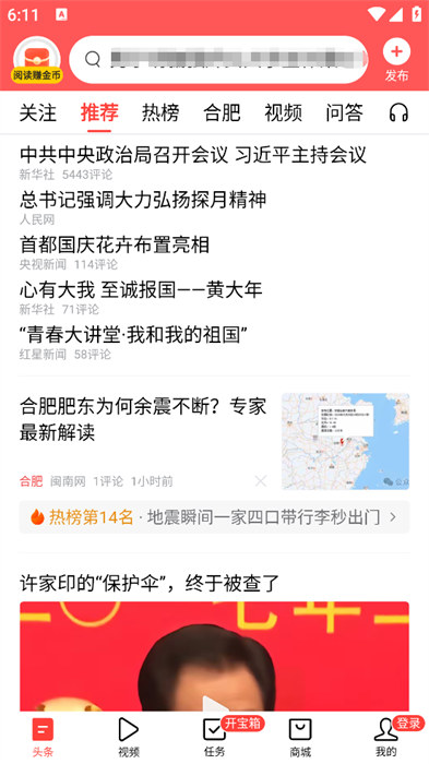 2、在软件的首页可以看到推荐的新闻资讯和热门的资讯信息等;