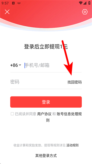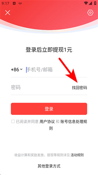 4、在密码登录页面,点击找回密码,按照提示完成密码找回操作。