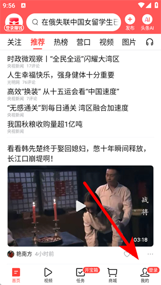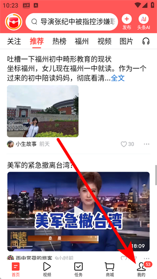 1、打开今日头条APP,点击右下角我的,进入个人的页面。