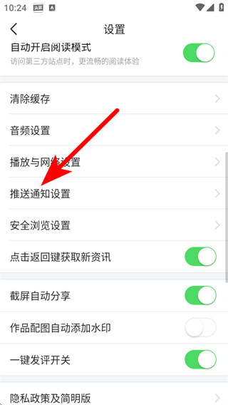 3、在设置页面,点击推送通知设置,进入推送通知设置页面。