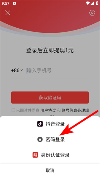 3、在菜单中需要选择密码登录,进入账号密码登录的页面。