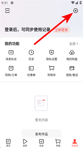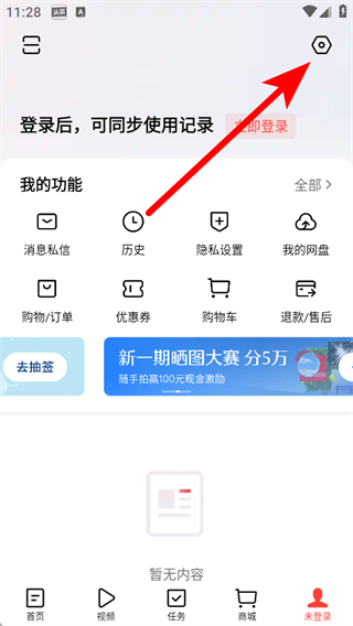 2、在个人中心页面点击右上角的设置图标,进入设置操作界面。
