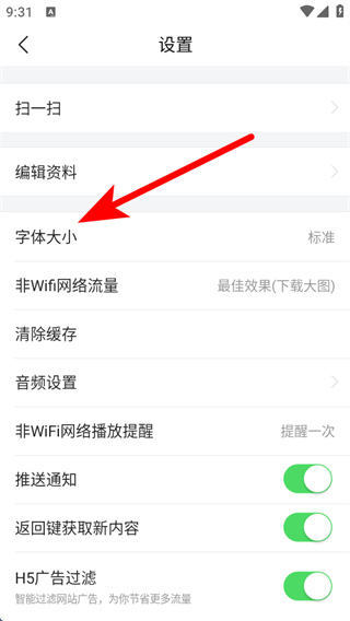 3、在设置界面中,点击字体大小选项,进入字体大小预览页面。