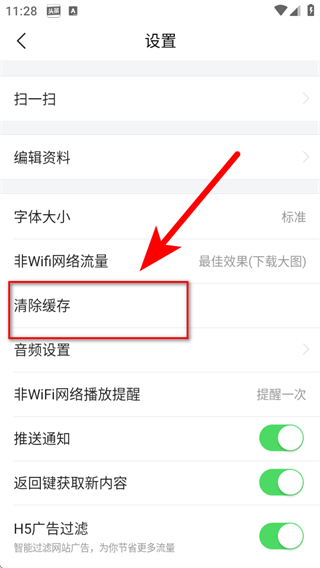3、在设置页找到清除缓存选项并点击,完成缓存空间的清理。