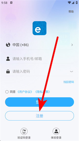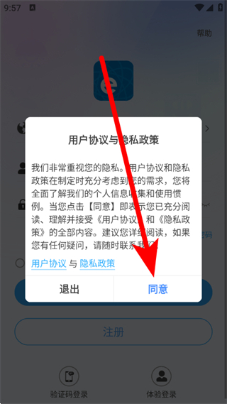 1、打开易微联,在弹出提示框,点击同意,进入登录页面。
