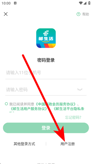 1、打开邮生活,点击底部的我的,进入我的页面。
