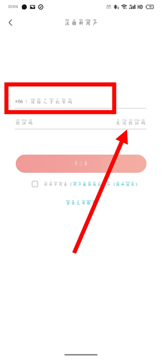 3、在注册页面,输入手机号码,点击发送验证码。