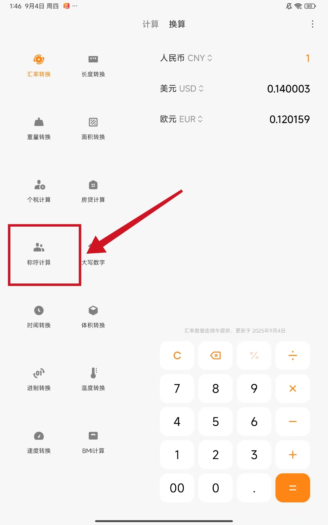 2、在换算功能页面里,找到并点击称呼计算选项,进入称呼计算界面。