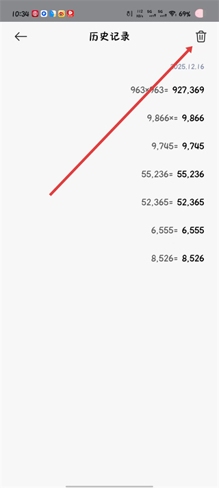 3、在历史记录页面中点击右上角的垃圾桶图标,触发记录选择状态。