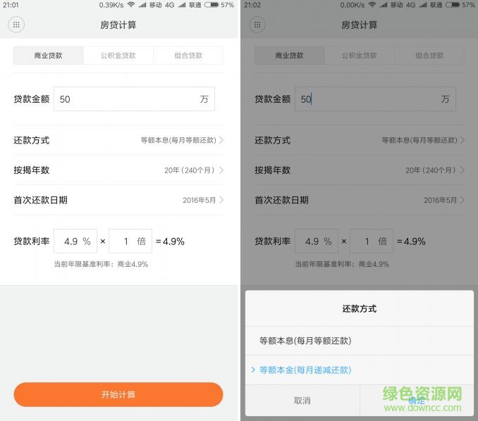 例如:20年的50万商业房贷,贷款利率4.9%,等额本息,求每月应还款,使用小米全能计算器非常方便计算出结果。支持等额本金和等额本息。
