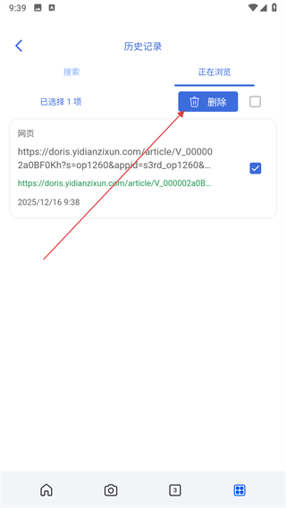 4、选中目标浏览记录后,点击页面上方的删除按钮,完成该条记录的删除操作。