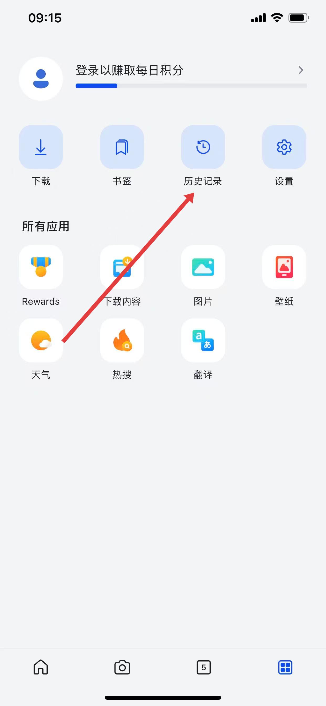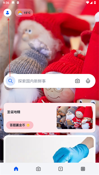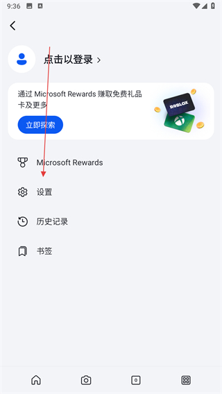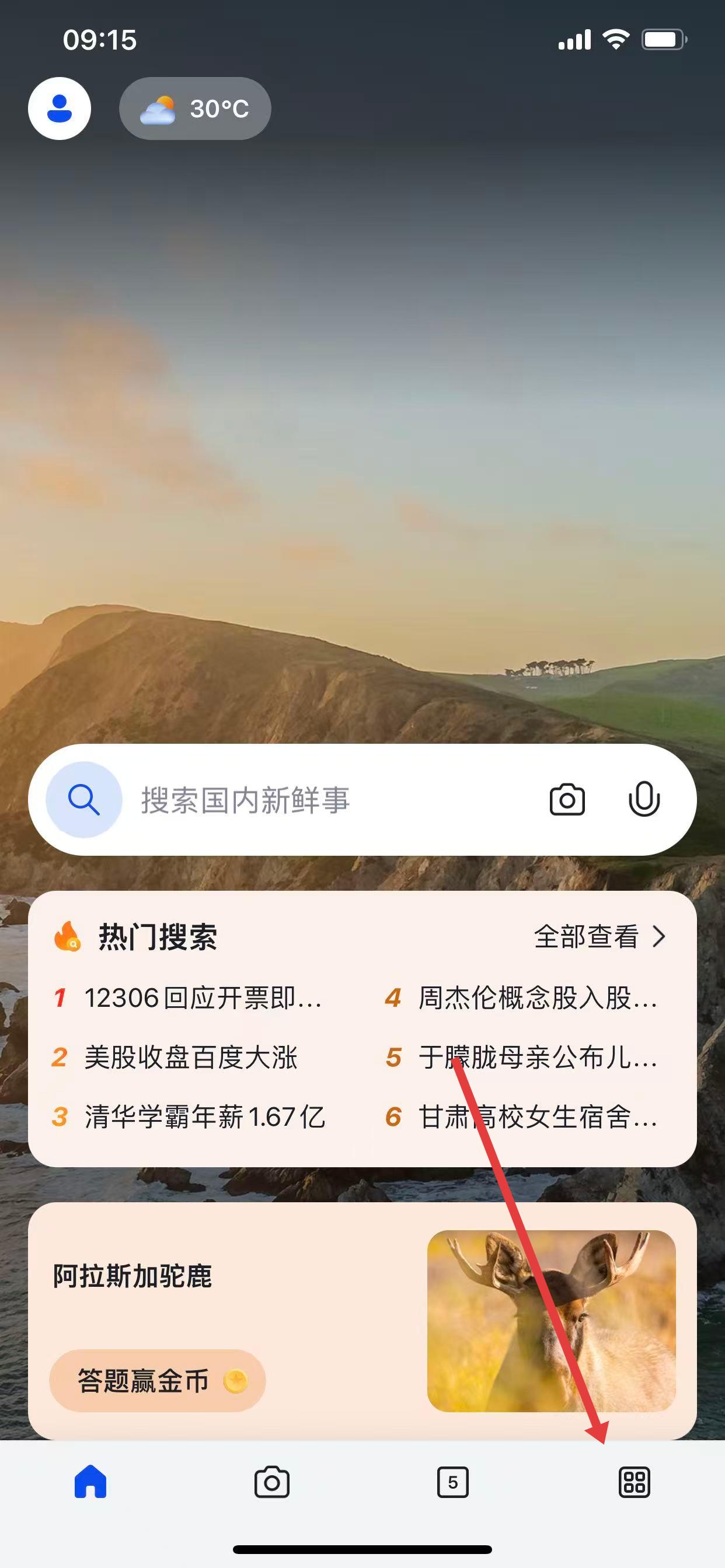 1、打开微软必应应用,点击底部导航栏中类似九宫格的应用图标。
