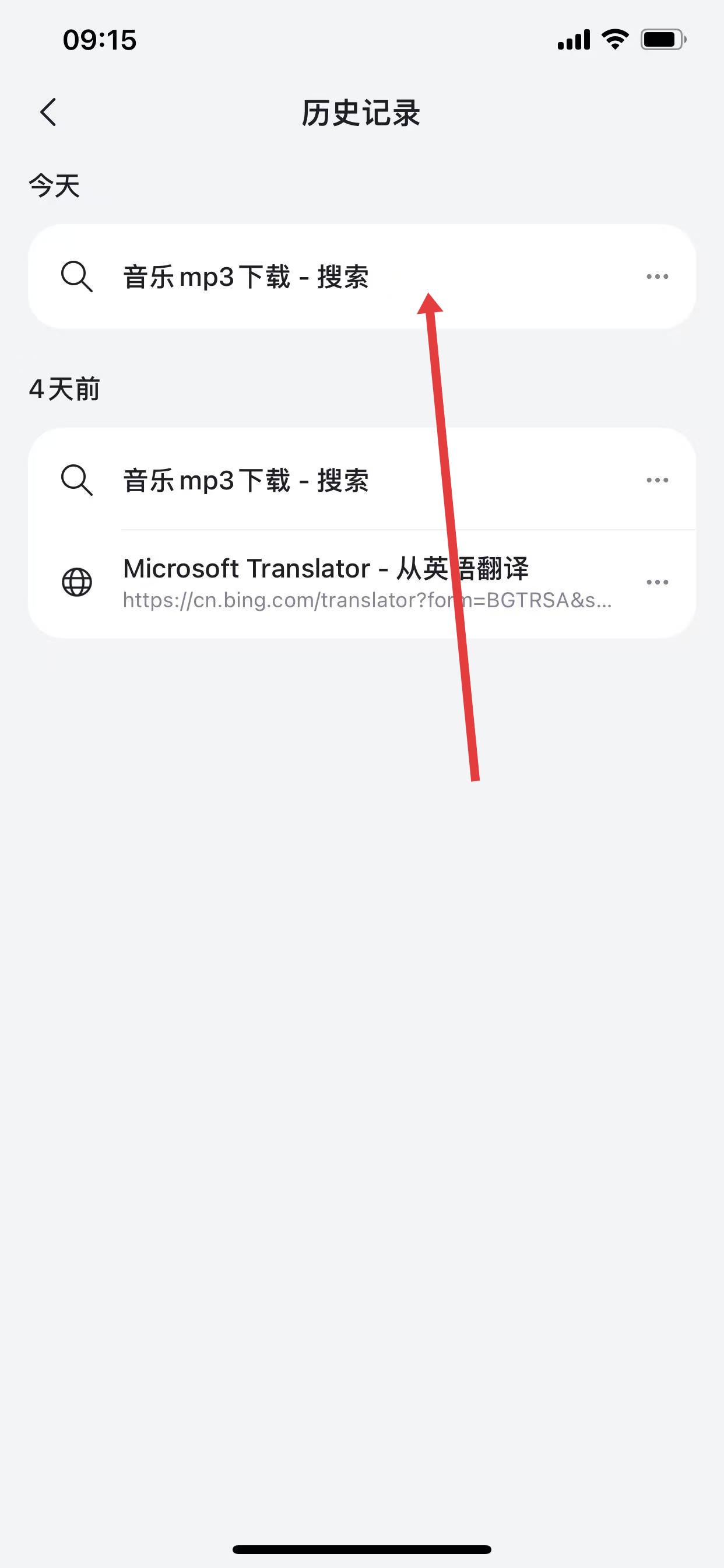 3、进入历史记录页面后,就能看到搜索历史记录列表,点击其中一条记录。