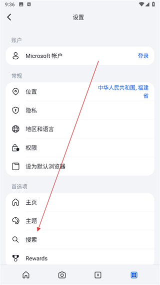 3、在设置页面中找到搜索选项,点击该选项进入搜索相关的设置页面。