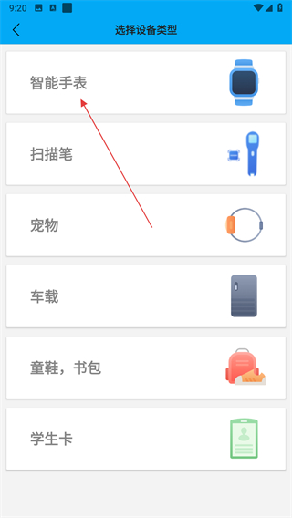 3、在弹出的选择设备类型页面里,点击智能手表选项。