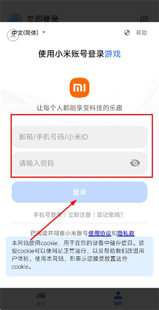 3、在登录页面填写手机号和密码后,点击登录完成账号登录操作。