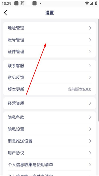 3、在设置页面,点击账号管理选项,进入账号管理页面。