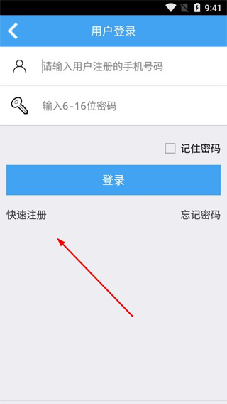 2、在登录页面点击快速注册选项,进入用户注册页面。