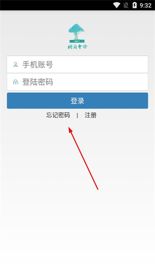1、打开桐岗诊所app的登录页面,点击忘记密码选项,进入找回密码页面。