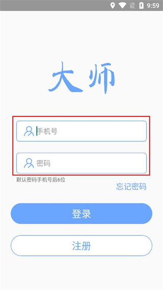 3、在登录界面的对应输入框,分别填写个人手机号和对应的登录密码。