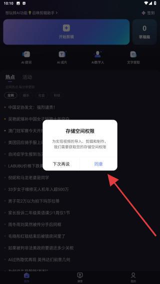 2、点击后,会弹出的存储空间权限弹窗,选择同意。