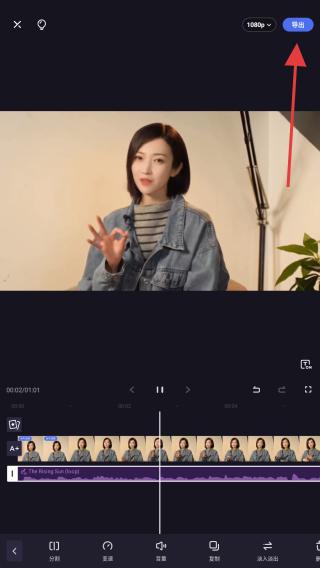 4、进入剪辑界面,使用下方的工具栏,剪辑后可点击导出的按钮即可制作完成。