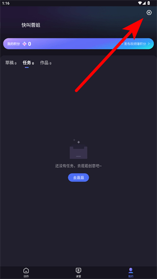 1、在个人中心页面,点击右上角的设置图标,进入设置界面。