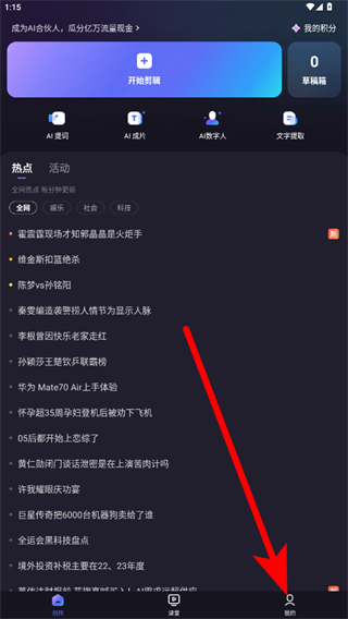 1、打开度加剪辑APP,点击右下角我的,进入个人页面。