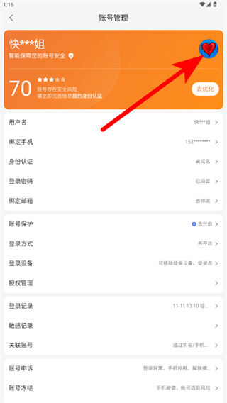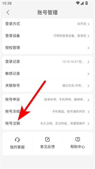 3、在账号管理页面,点击账号注销选项,进入账号注销确认页面。