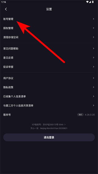 2、在设置界面中,找到并点击账号管理选项,进入账号管理页面。