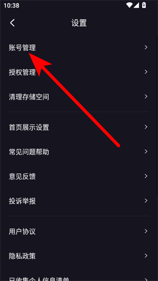 3、在设置页面中点击账号管理,进入账号管理页面。
