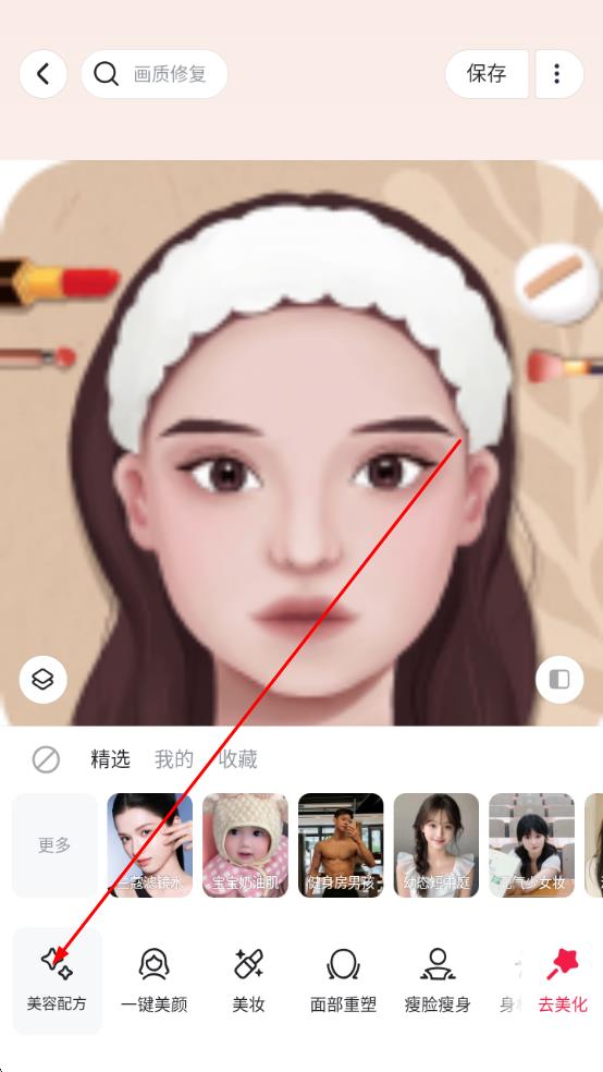 3、进入人像美容编辑页,点击预设的美容效果模板,一键应用到图片上,实现人像美化;也可结合一键美颜、美妆等其他功能。