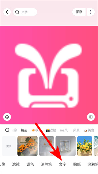 3、在编辑页面,点击文字选项,进入文字编辑界面。