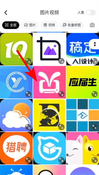2、跳转至所有图片页面,浏览手机相册,找到并点击需要进行人像美容的图片,将其导入编辑界面。