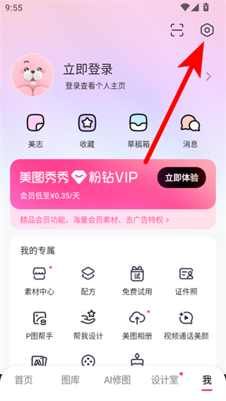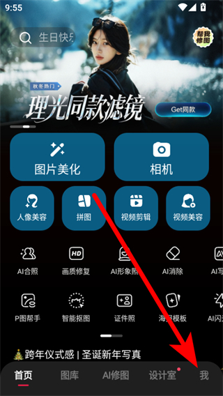 1、打开美图秀秀,点击底部导航栏的我选项,进入个人中心页面。