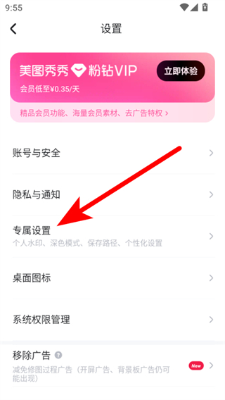 3、在设置界面中,找到并点击专属设置选项,进入专属设置页面。