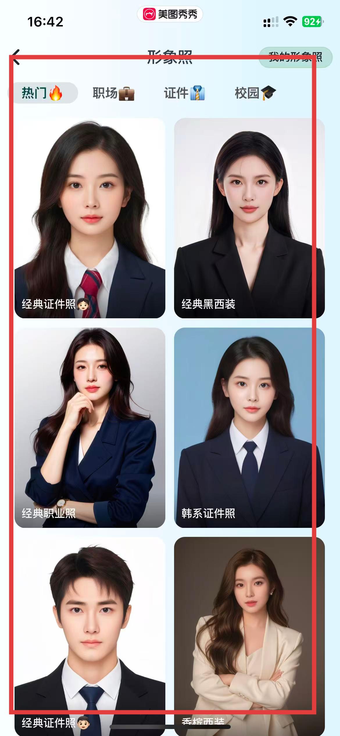 3、面部档案建立好后,进入形象照选择界面,点击选择你喜欢的形象照类型。
