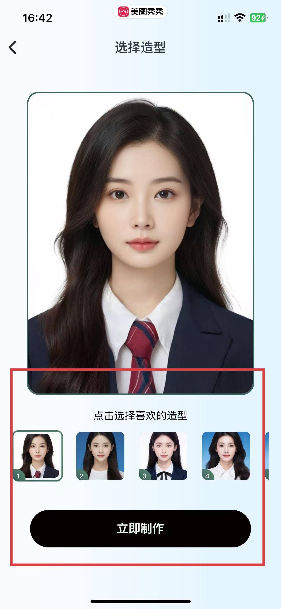 4、点击选择具体喜欢的造型,然后点击立即制作,即可生成相应的AI形象照。