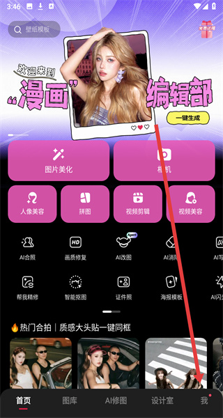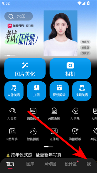 1、打开美图秀秀APP,点击右下角我,进入个人页面。