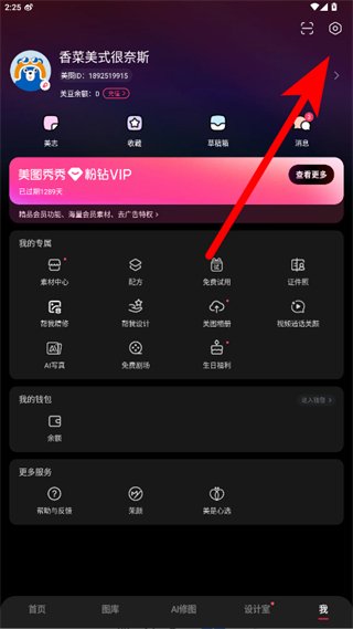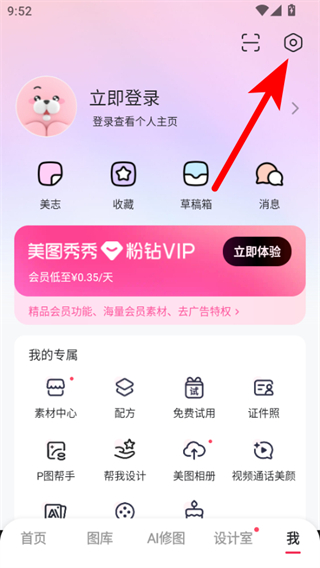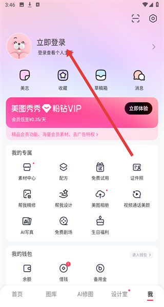 1、打开美图秀秀,点击底部导航栏的我选项,进入个人中心页面。